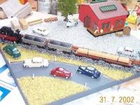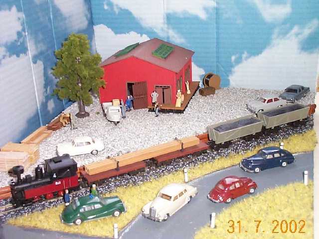 Nee, das kann ich als Modellbahner nicht zulassen -  ich bot ihm an , mich an einem Diorama zu versuchen , und ihm die Lok und seine Autos, die er schon vorher hatte, schön zu präsentieren.