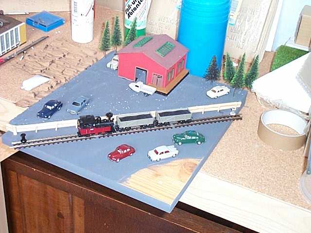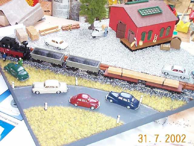 Nee, das kann ich als Modellbahner nicht zulassen -  ich bot ihm an , mich an einem Diorama zu versuchen , und ihm die Lok und seine Autos, die er schon vorher hatte, schön zu präsentieren.