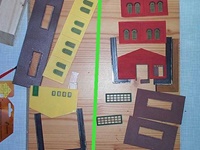 Hie sieht man, dass auch einfachen Mitteln sowas gebaut werden kann, ein Regalboden, ein N-Gebäude, Baum und Streumaterial aus der Restekiste, Fleisch-Spieße (Bahnsteig) und Schaschlik-Spieße (Straßenpfosten) aus dem Restpostenmarkt, feines Schleifpapier (Straße)…. uns los geht's :-)